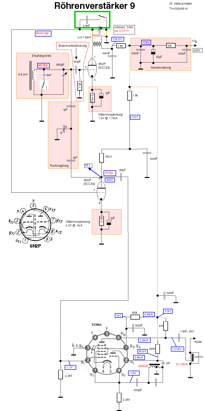 Versuche mit der Röhre 6N2P (= ECC83) Tx=20231208.