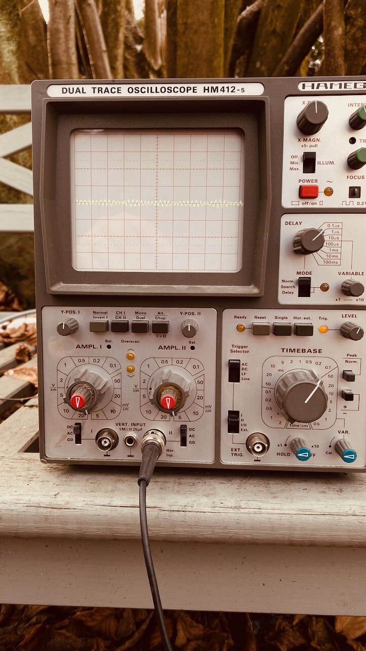 Ich habe auch meine active probe ausprobiert: damit ist der Brumm deutlich geringer! Allerdings wird auch das Signal kleiner. Beides liegt daran, dass die active probe nach unten in der Grenzfrequenz deutlich beschnitten ist und so den Brumm ausblendet.