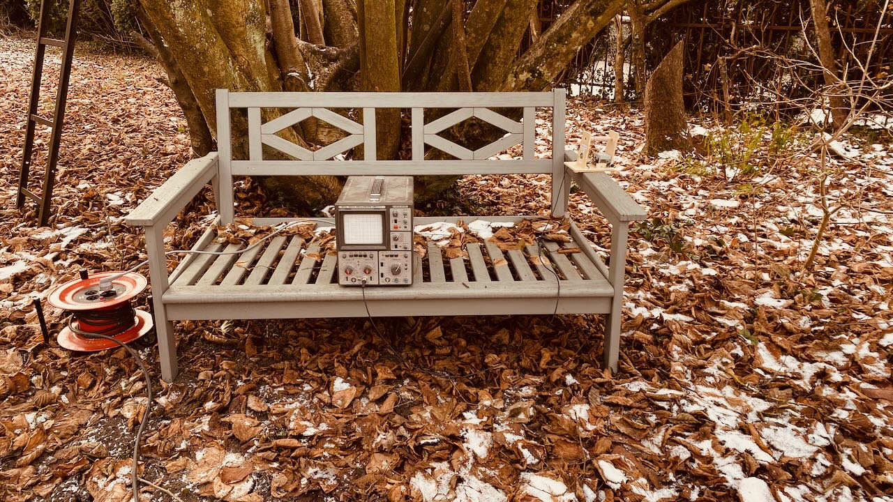 Frustriert von diesem Verhalten wollte ich etwas anderes testen: wie ist wohl der Empfang ausserhalb des Hauses, im Garten? Werde ich dort auch die ganzen Störsignale haben, die ich im Haus sehe und die mir das Leben schwer machen? Also trotz Minusgraden (-11C letzte Nacht!) setup im Garten, ca. 20m vom Haus entfernt.
