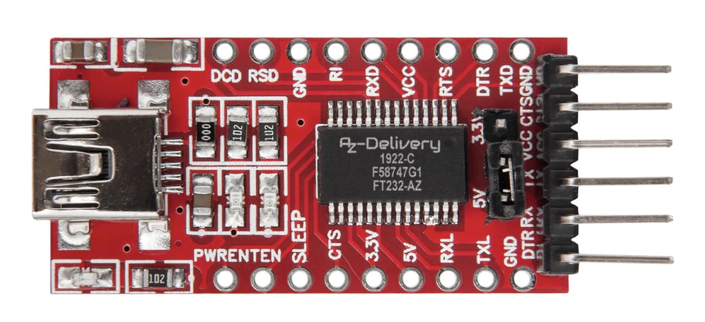 Dann kam mir die Idee, die seriellen Anschlüsse TXD (pin 2, GPIO01) und RXD (pin 3, GPIO03), die ja herausgeführt sind, mit einem externen USB/seriell Wandler anzusprechen. Ich musste ja nur einmal ein neues Programm flashen, denn das hatte ich mittlerweile so umgebaut, dass man den WiFi-Modus sicher erreichen konnte, egal was los war. Einen FTDI232 hatte ich, also nur ein paar Kabel provisorisch gesteckt (RX -- TX, TX -- RX, GND, +5V) und schon konnte ich auf dem seriellen Monitor der Arduino-IDE meine debug-Texte lesen! Yeaaah!