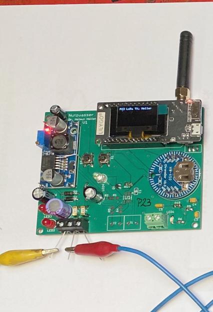 Für ein Projekt verwendete ich einige (etwas über 20) LILYGO ESP32 development boards, so wie eines oben im Bild zu sehen ist. Das development board (DevKit) ist nur das kleine graue Teil mit der Antenne -- die grüne Platine ist von mir. Solche DevKits sind oft billig (5 EURO) aber dieses hat es in sich: neben einem ESP32 ist ein Bildschirm drauf und auf der Unterseite ein LoRa Weitbereichs-Funkmodem (deshalb die Antenne). Natürlich gibt es auch eine USB-Buchse über die man z.B. den ESP neu programmieren kann. Doch dazu gleich mehr. 2 x 13 pins stellen einige GPIO pins und andere Verbindungen (3.3V, 5V, Masse, etc.) zur Verfügung.