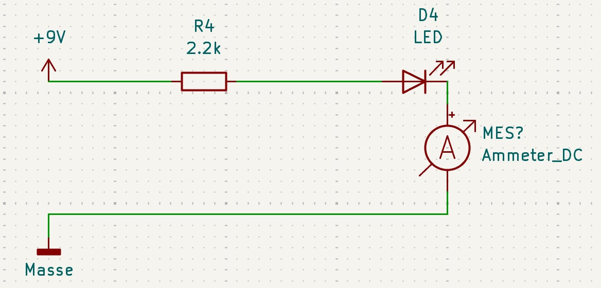 Eine Strommessung wird immer in Reihe mit dem Bauteil vorgenommen, weil dann der Strom durch das Messgerät fliessen muss. Wollen wir also z.B. den Strom, der durch die Diode (oder die LED oder das Glühlämpchen) fliesst wissen, so schalten wir das Amperemeter in Reihe dazu (ja, dazu muss man die bestehende Verbindung auftrennen):