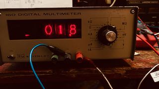 | Als nächstes prüfte ich in der Vorwärtsrichtung. Bei einer Spannung von 270 mV (das ist zumindest in der erwarteten Größenordnung, vermutlich sind die Spannungen aber nochmal viel kleiner, vielleicht 1 mV oder weniger, aber das konnte ich nicht messen) zeigte die Diode einen Vorwärtsstrom von 487 nA, was einem Widerstand von nur 554 kiloOhm entspricht, deutlich weniger, als unser geplanter Eingangswiderstand! Der Transistor dagegen zeigte nur einen Strom von 0.8 nA, was 337 MegaOhm entspricht! Was für ein erstaunlicher Unterschied!! Die Diode würde also unseren Eingangswiderstand auf nur 500 kOhm absenken, während der Transistor den Eingang nicht merklich belastet. Das ist nun eine überzeugende Erklärung, warum man hier keine Dioden verwenden kann.