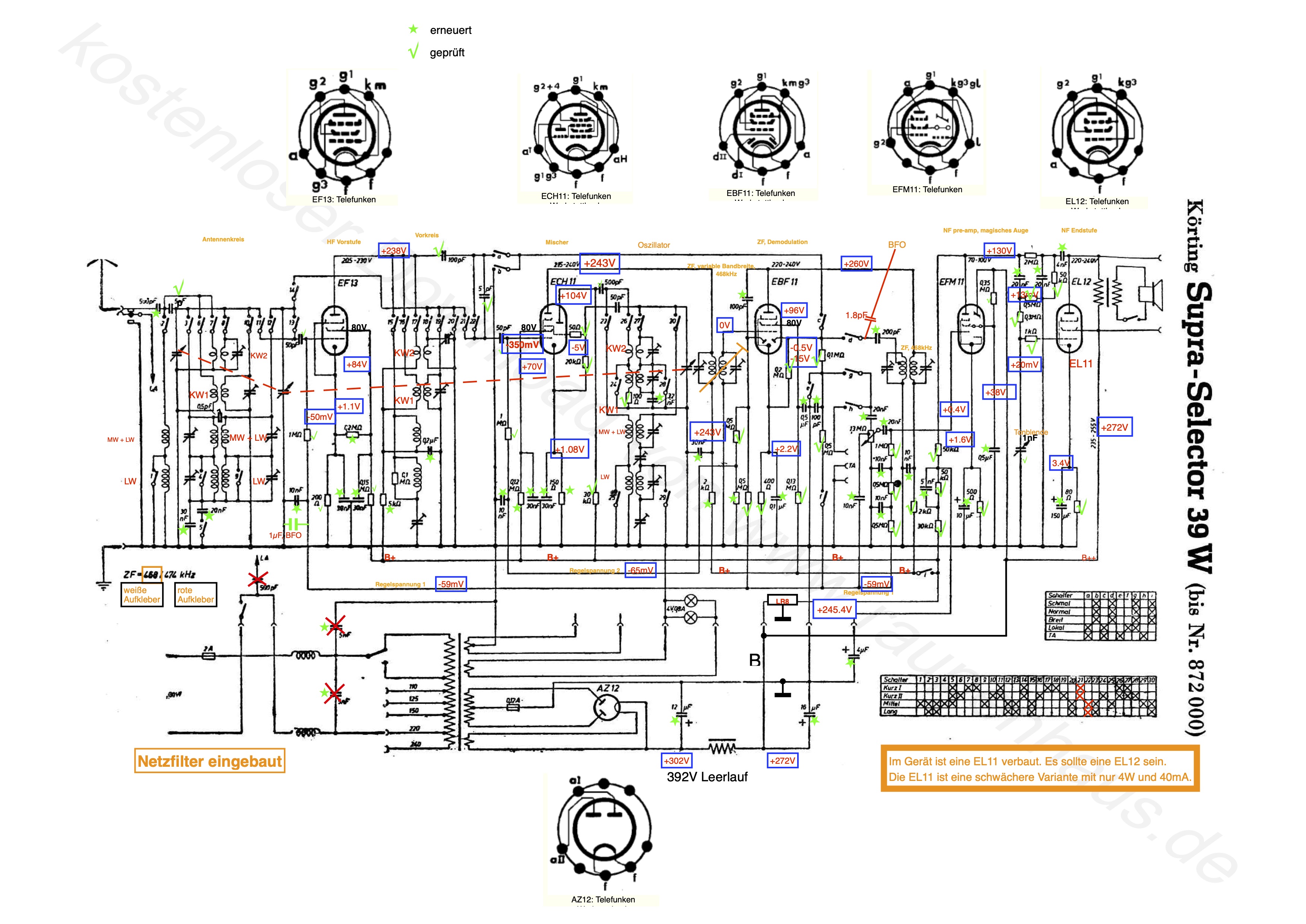 * Für mehr Audio-Lautstärke baute ich eine neue EL12(N) ein (statt der schwachbrüstigen EL11, die im Gerät verbaut war).