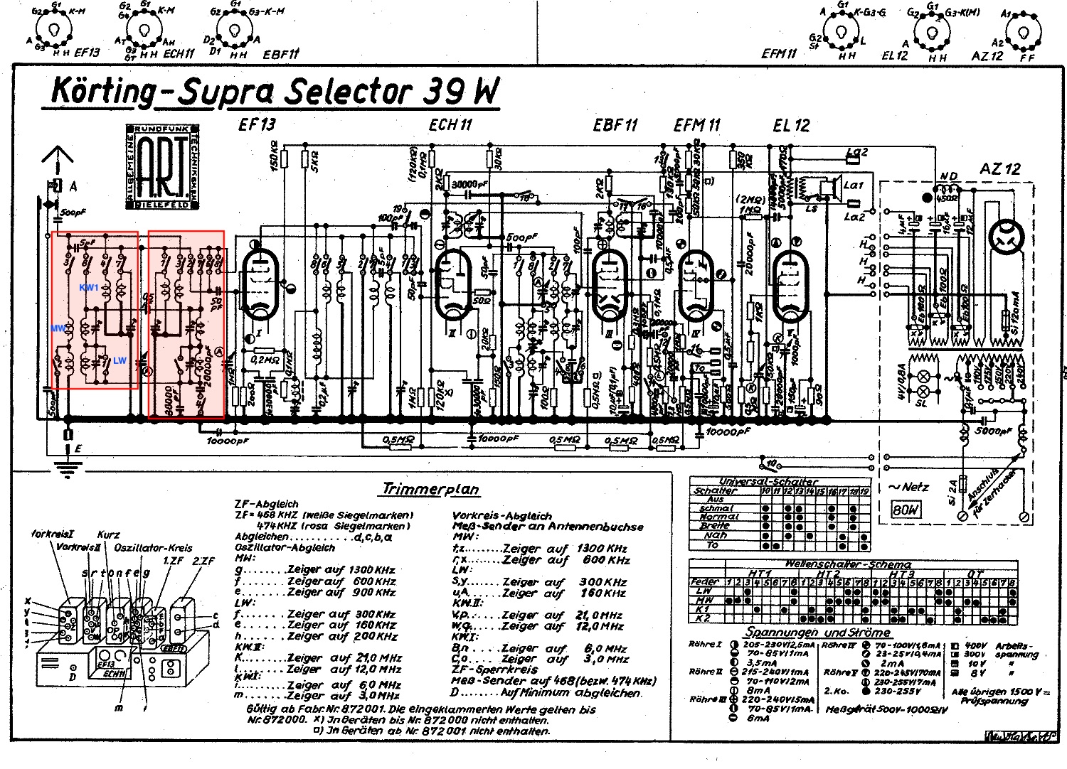Interessant ist, wie sich die Vorstufenschaltung zwischen LW/MW und KW1/KW2 unterscheidet: