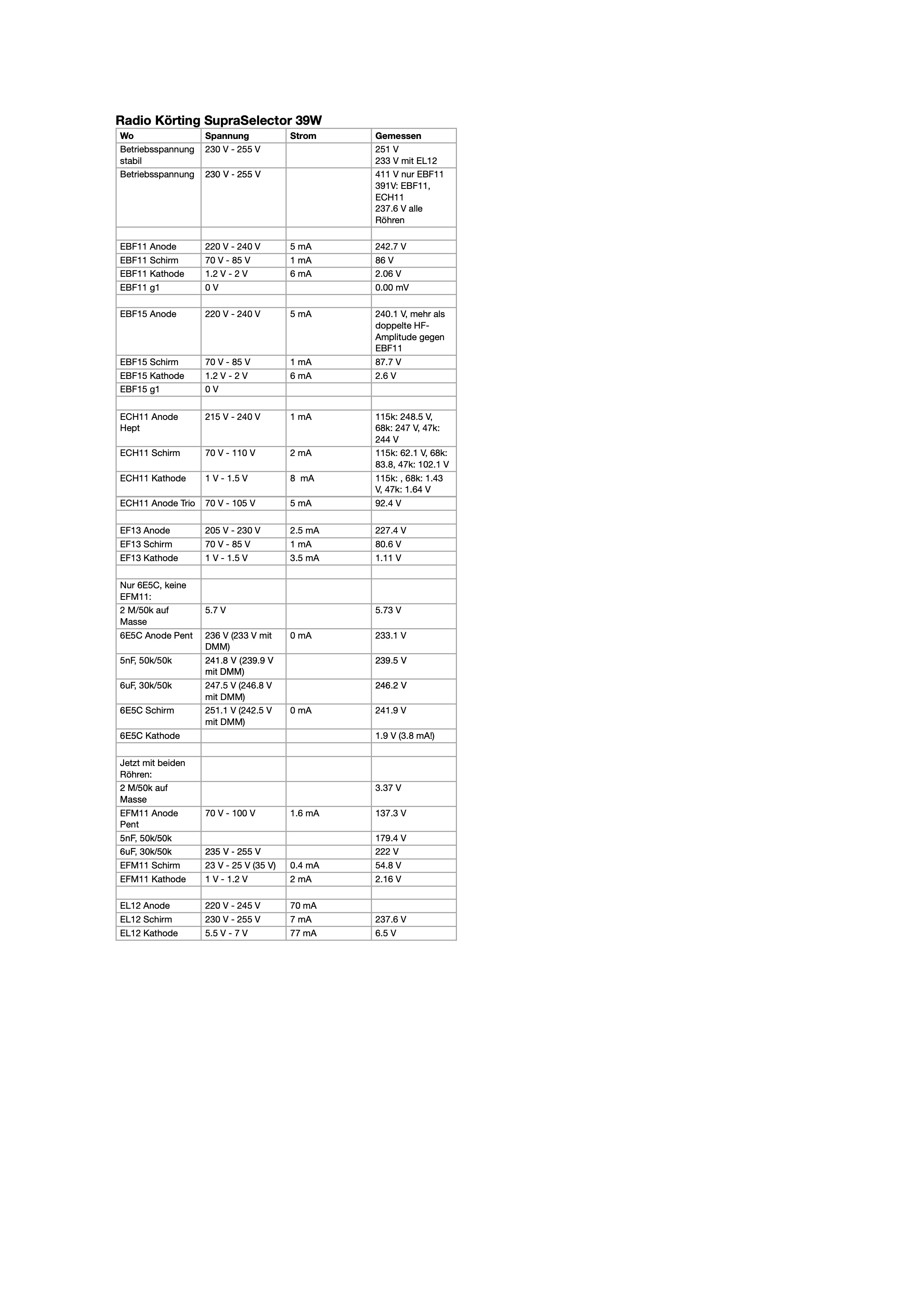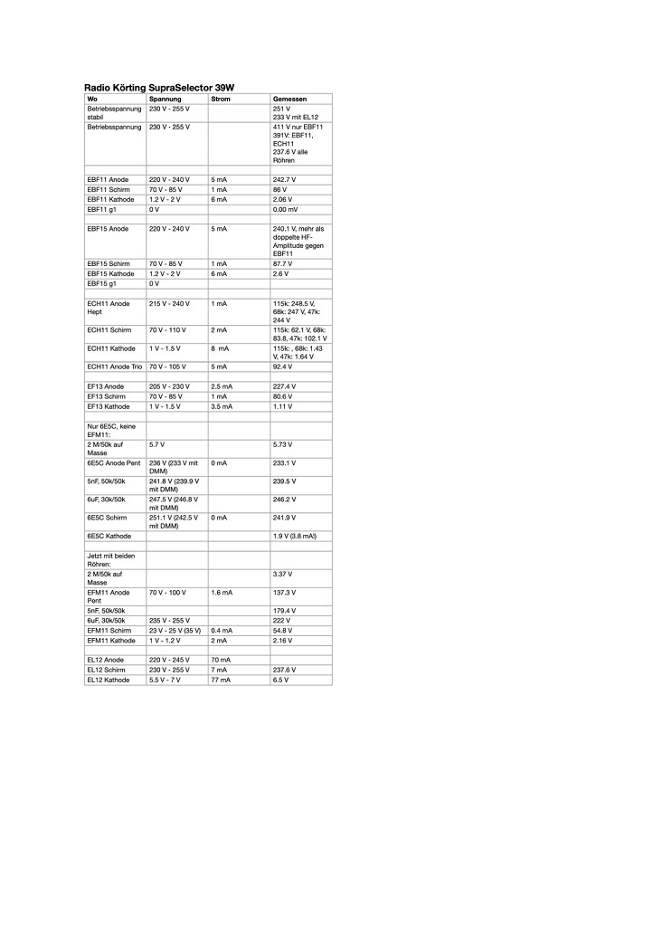 * Ich habe noch alle relevanten Spannungen gemessen und mit den Angaben aus mehreren Schaltplänen verglichen: