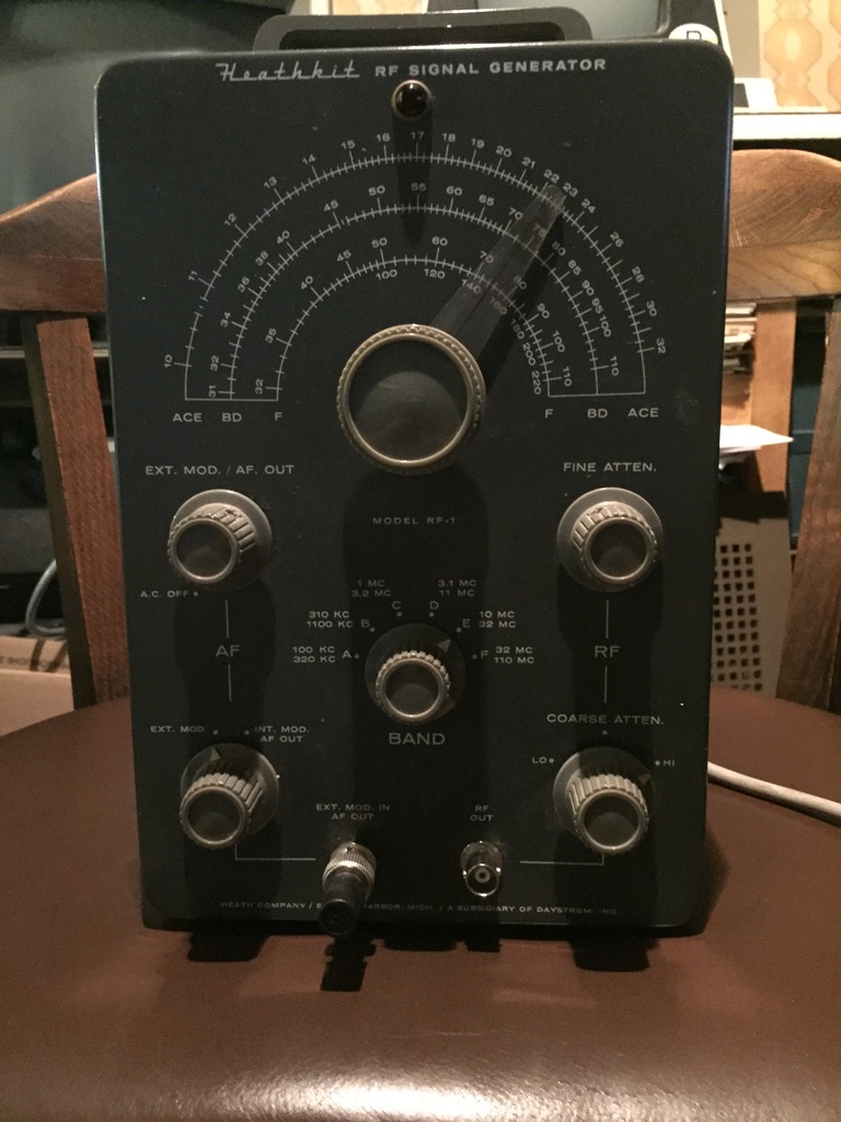 Ich erwarb kürzlich auf Ebay einen alten Heathkit RF-1 Prüfsender für die Radioreparatur (Abgleich). Die Aufbau- und Bedienungsanleitung findet sich im Internet.