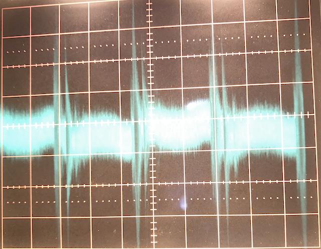 * ich sehe teilweise sehr starke 100Hz Impulse, wie von hart schaltenden Gleichrichterdioden, die dann den Schwingkreis zum Nachschwingen anregen