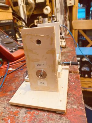Ich kopple jetzt die HF über einen Schwingkreis aus und per BNC-Kabel ins Radio auf Langwelle ein. Und tatsächlich: bei 277.5kHz ist jetzt der DCF77 super stark zu hören! Er mischt sich natürlich mit der eng benachbarten Frequenz auf 76.73kHz (siehe Tabelle oben), sodass ich keinen BFO brauche, um ein Audiosignal zu hören. Tatsächlich ist dieses Signal (und das vom Oszillator auf 200kHz) so stark, dass es den Empfänger übersteuert und ich sehr viele Mischprodukte überall bekomme. Aber ich bin sehr froh, dass es jetzt funktioniert! Ich werde einen Festabschwächer von 40dB kaufen, um zu starke Signale dämpfen zu können. Die Koppelspule von EC(C)83 auf E(C)C83 musste ich übrigens noch einmal umpolen (jetzt wieder so wie original), die Rückkopplung muss ich aber ganz zudrehen, sonst schwingt der Verstärker sofort. Der 200kHz Oszillator ist super stabil. Übrigens mischt sich beim Einschalten eines benachbarten Röhrenmonitors sofort dessen Zeilenoszillator mit den beiden anderen Trägern und erzeugt ein zusätzliches Pfeiffen.
