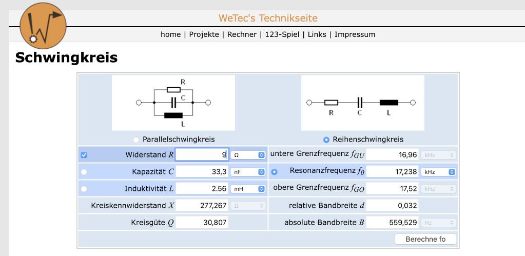 Dies entspricht einem Transformationsverhältnis von 6:1 und mit der schwachen Verstärkung von V = 2 kann ich so nie die Schwingbedingung erfüllen.