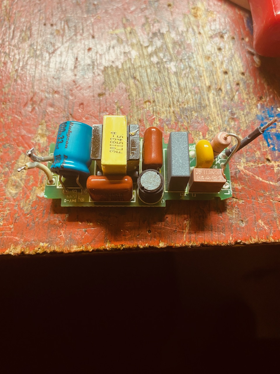F, das ESR ist mit 0.33 Ohm aber noch recht gut. Ich habe ihn daher erst mal nicht weiter betrachtet, zumal ich auch keinen Ersatz vorrätig habe. Er liegt direkt parallel zu den LEDs.