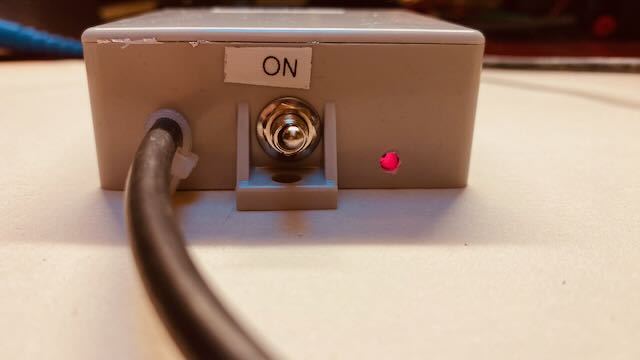 Die rote LED vom Blitzgerät dient auch gleich als Betriebsanzeige. Sie leuchtet, wenn die Hochspannung vorhanden ist und die Impulse kommen.