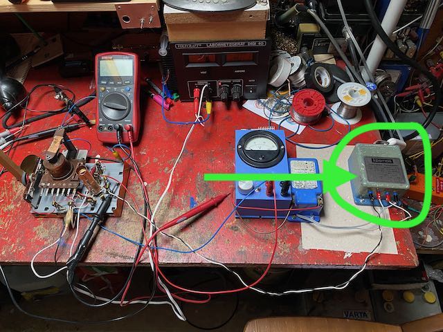 Um jeglichen Brumm aus der Heizung auszuschliessen, heize ich versuchsweise aus einem Akku: keinerlei Brumm mehr! Damit ist eindeutig klar: die Einstreuung erfolgt über die Heizung! Und problematisch ist auch, dass ich das Schirmgitter aus der gleichen Trafowicklung wie die Heizung versorge; da kommt es immer wieder zu Spannungsdifferenzen zwischen Heizung und Kathode. Eine eigene Heizwicklung (mit Mittelanzapfung) wäre besser, habe ich aber (noch) nicht. Wenn ich mehr Zeit habe, werde ich mir ein geregeltes und einstellbares Experimentier-Röhren-Netzteil mit separater HV (250V oder 400V) und Heizwicklung bauen. Aber für den Moment muss der Gleichrichter für die Heizung reichen.